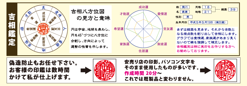 ゆえに当店ではお客様のお名前を鑑定して、総画が凶なら吉に補正し2日かけて